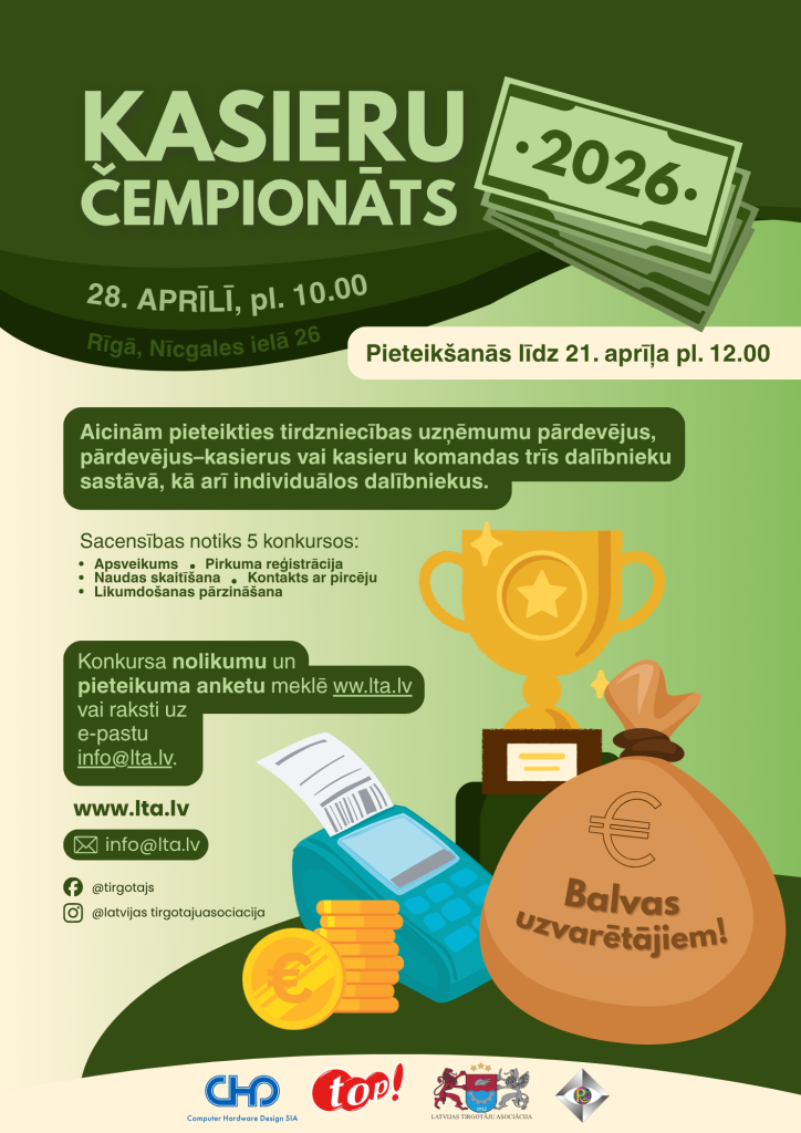 Aicinām pieteikties dāžādu uzņēmumu pārdevējus, pārdevējus – kasierus vai kasieru komandas 3 dalībnieku sastāvā un/vai individuālus dalībniekus. Pieteikšanās atvērta līdz 2026. gada 21. aprīļa plkst. 12.00!